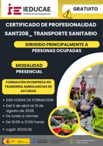 140 horas se realizarán en Transinsa Ambulancias de AsturiasEste certificado está subvencionado por el Servicio Público de Empleo del Principado de Asturias, por lo que es 100% gratuíto.